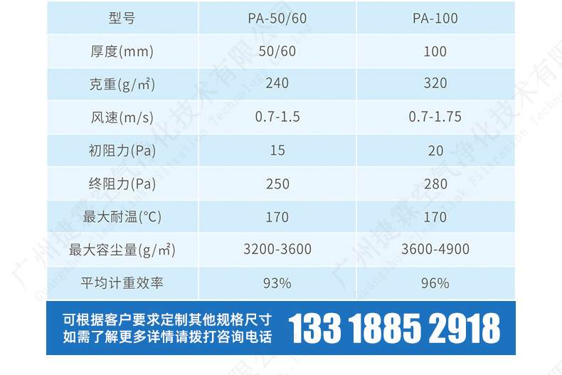 295*595*96 1500m³/h G4(35%) ≤55Pa ≤110Pa